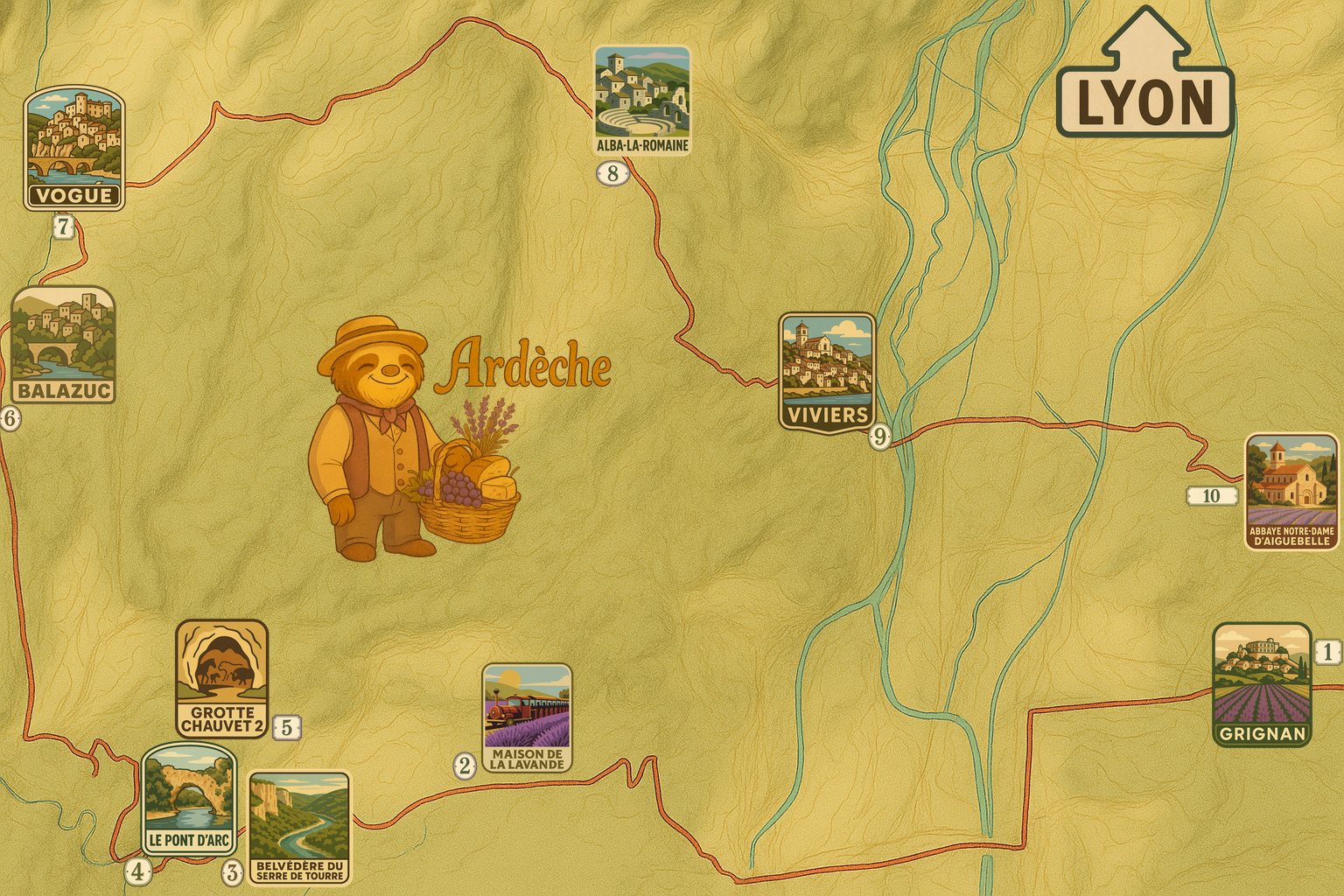 Są takie miejsca we Francji, które pachną lawendą, dźwięczą cykadami i wyglądają jakby ktoś je narysował akwarelami. Ardèche to właśnie taka kraina – mniej znana niż Prowansja, ale równie piękna, dzika i pełna zaskoczeń. Wystarczy zjechać z autostrady A7 w kierunku Montélimar, żeby przenieść się do świata kamiennych miasteczek, wąwozów i prehistorycznych jaskiń. To podróż, w której zamiast pośpiechu jest czas na piknik przy rzece, spacer po średniowiecznych uliczkach i łyk wina z lokalnej winnicy. Ruszamy!