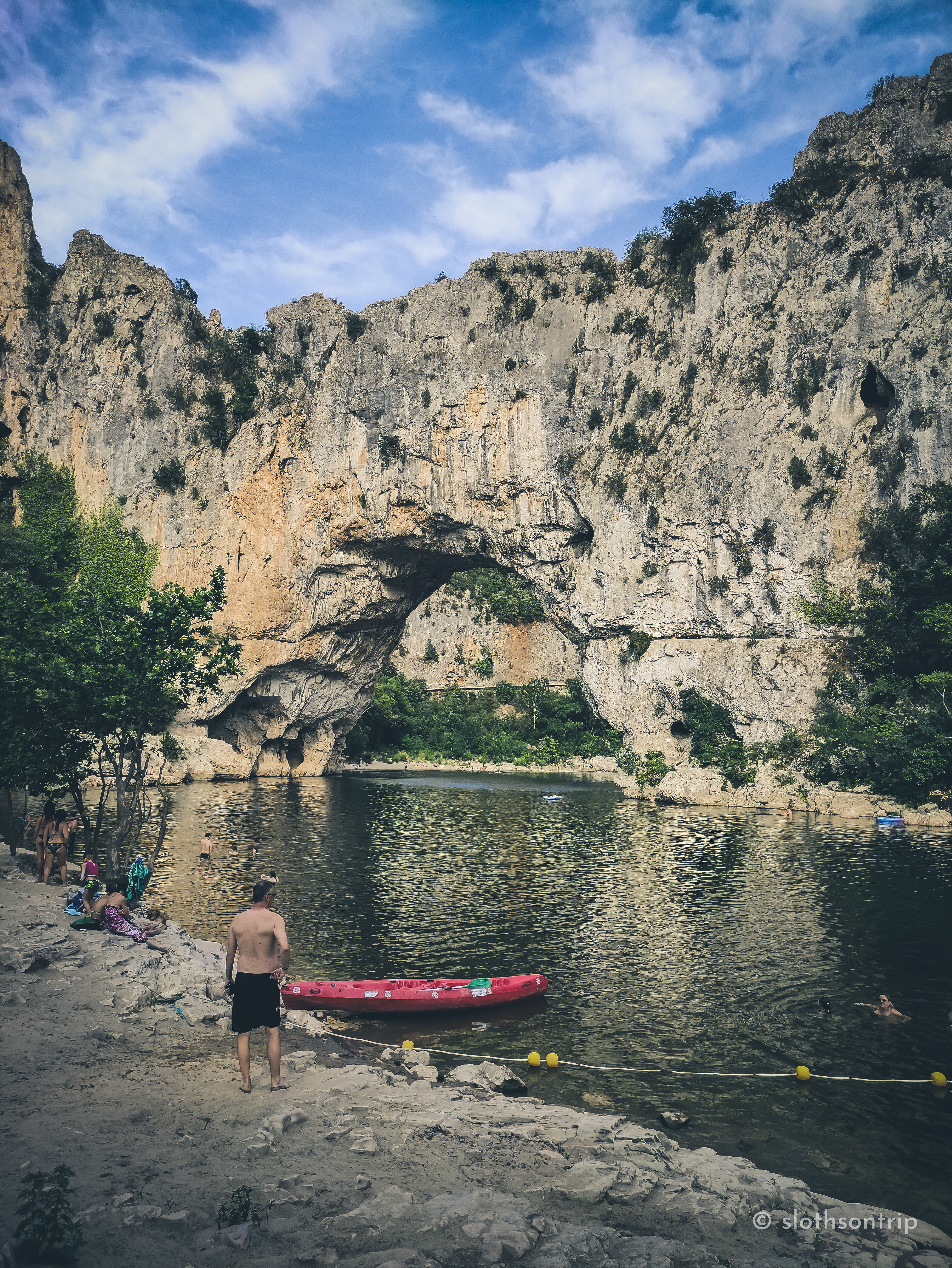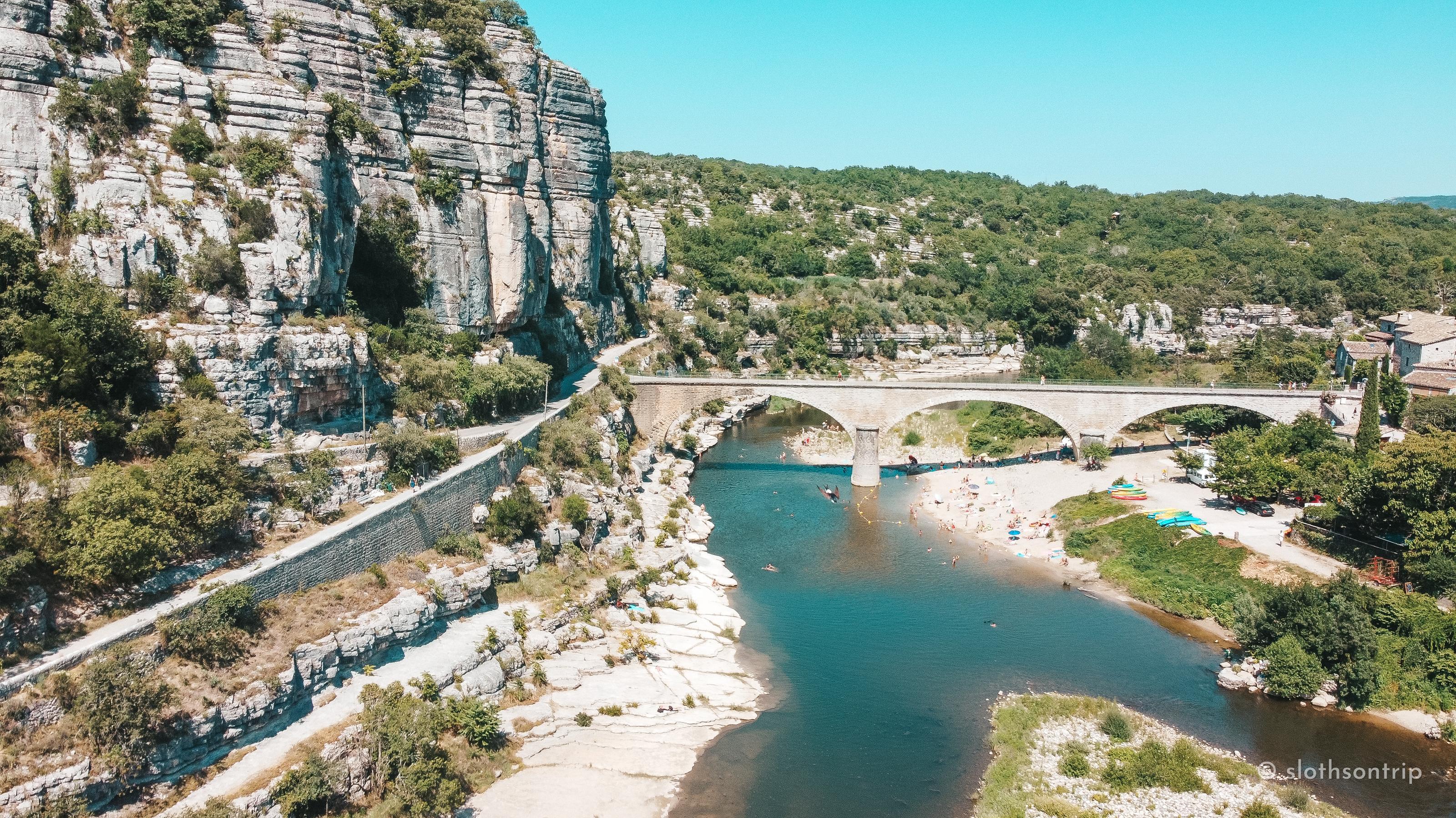 4. Pont d’Arc - Naturalny kamienny łuk nad rzeką Ardèche – jedno z najbardziej rozpoznawalnych miejsc w regionie. Można tu popływać, wypożyczyć kajak lub SUP-a, a także po prostu odpocząć na plaży z widokiem na imponującą skalną bramę.
