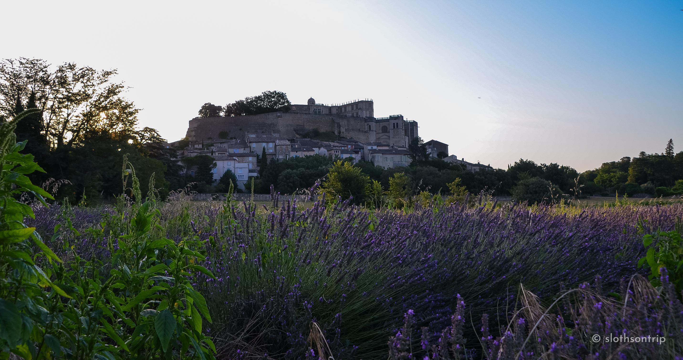 Następnego dnia mieliśmy zaplanowany wyjazd do Ardèche, więc do Grignan wróciłem sam o świcie. Chciałem zrobić kilka zdjęć, zanim pojawią się turyści. Miasteczko było puste i ciche, a w świetle poranka zamek wyglądał jeszcze bardziej imponująco. Po drodze zatrzymałem się na chwilę przy polach lawendy za miasteczkiem – z tego miejsca widać było cały Grignan na wzgórzu, otoczone fioletowym morzem. To chyba najlepszy punkt widokowy w okolicy, zwłaszcza wcześnie rano.