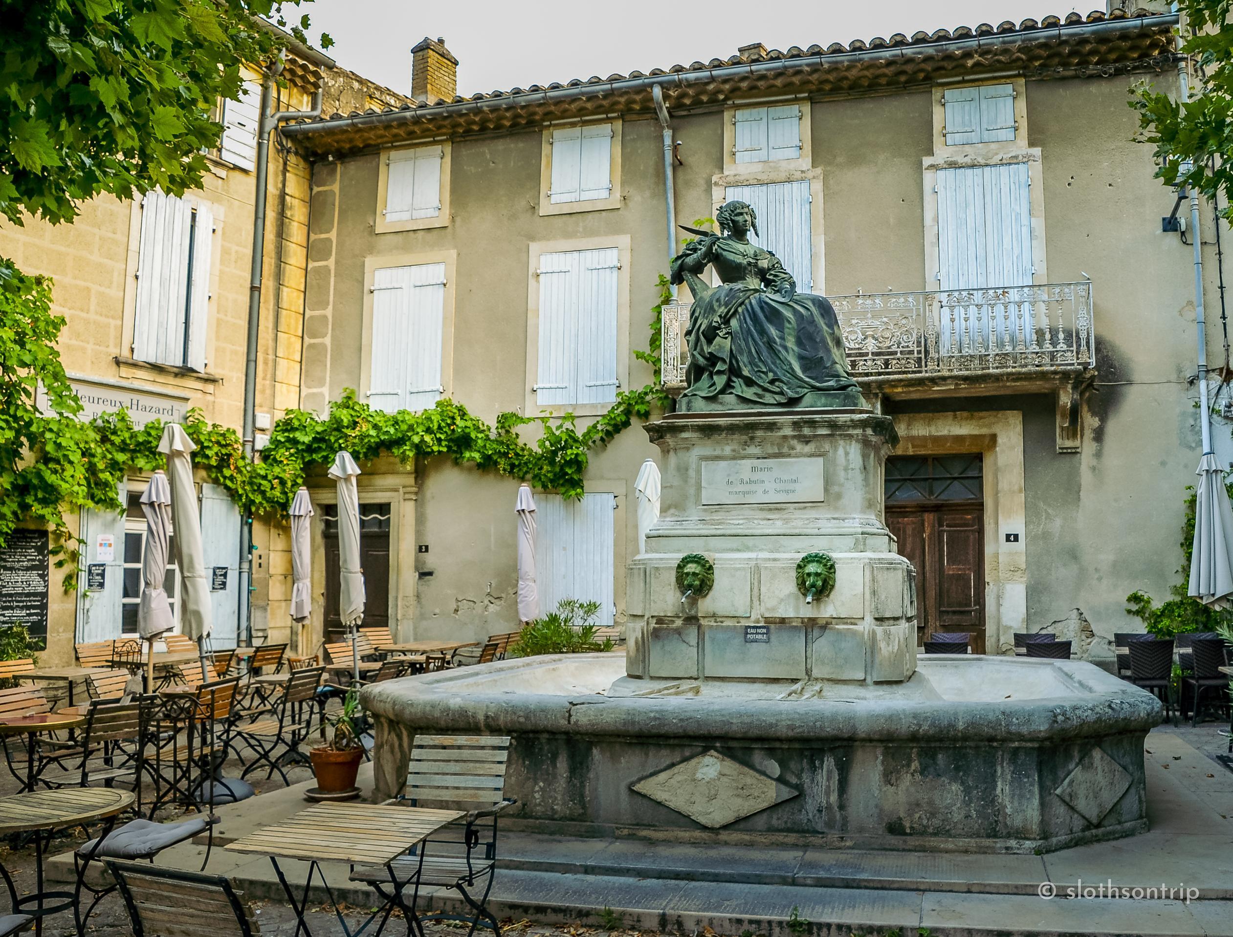Za każdym rogiem kryje się coś nowego: błękitne okiennice, stara fontanna albo para kotów odpoczywających w cieniu. Na głównym placu stoi pomnik markizy de Sévigné, przy którym rano słychać rozmowy mieszkańców i dźwięk filiżanek z kawą.