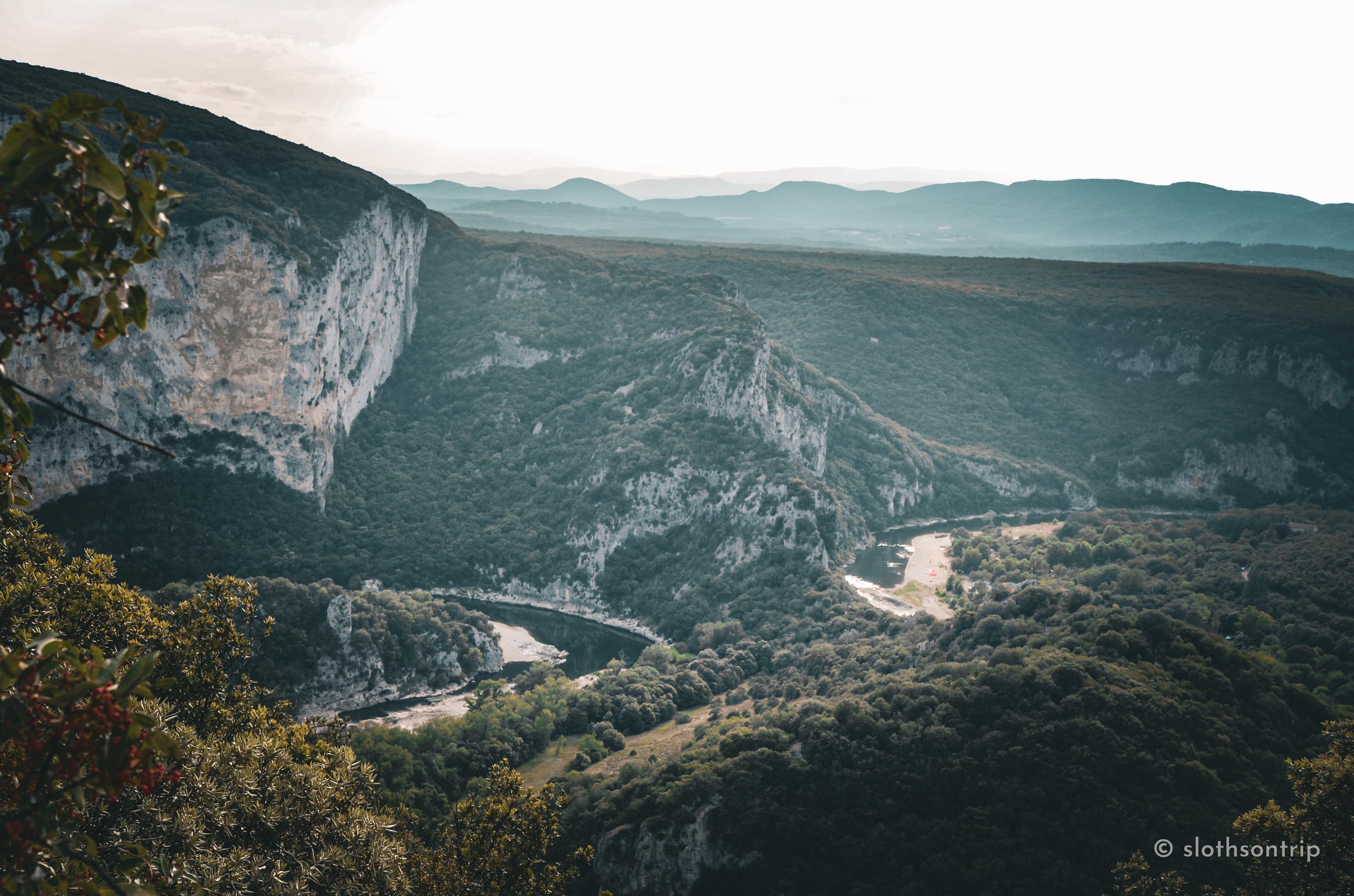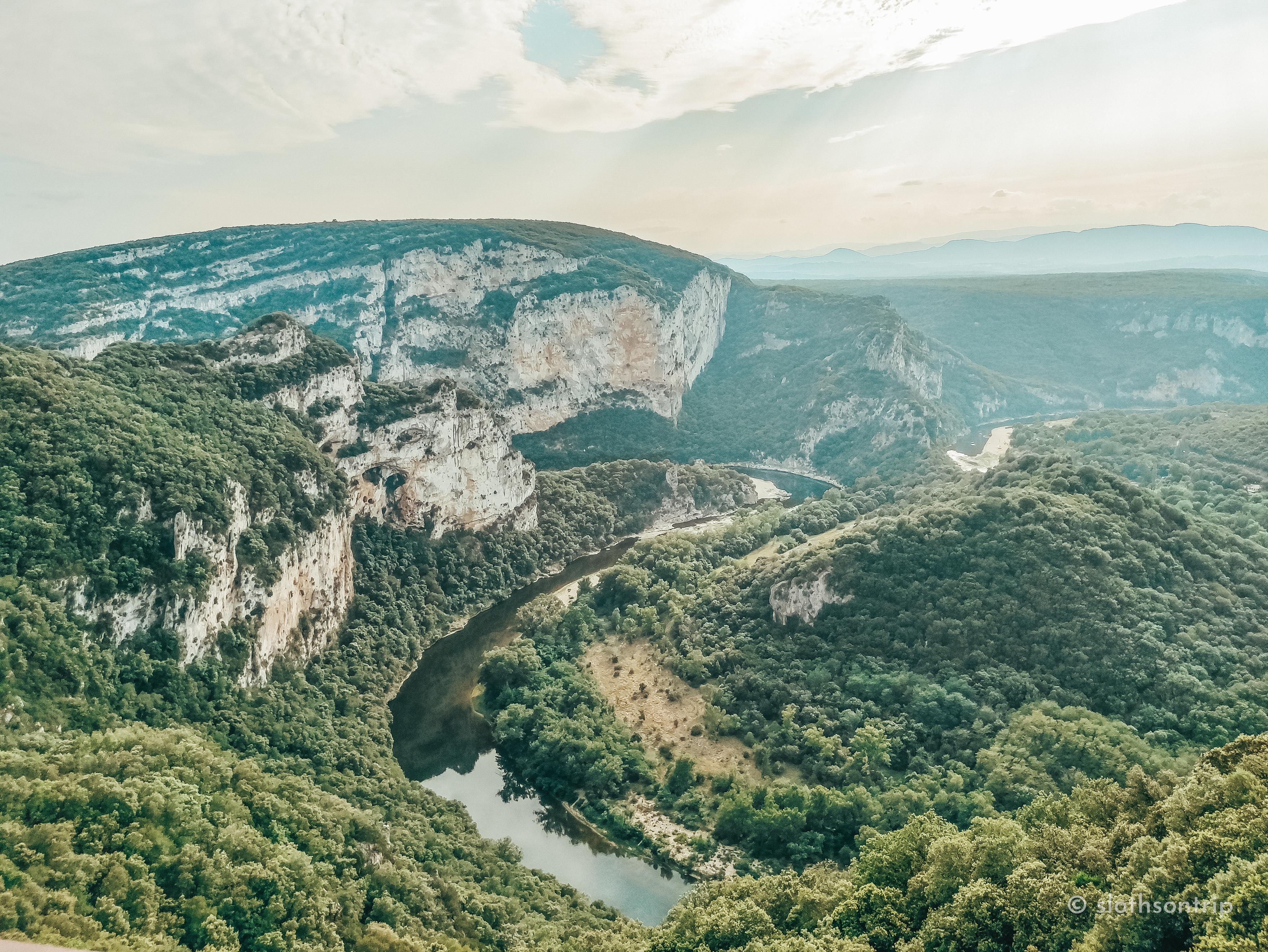 Belvédère du Serre de Tourre – punkt widokowy, który zapiera dechNa trasie przez wąwóz Ardèche zatrzymaliśmy się przy Belvédère du Serre de Tourre – jednym z najpiękniejszych punktów widokowych w regionie. Panorama rzeki wijącej się wśród skalnych ścian robi ogromne wrażenie, szczególnie rano, gdy słońce dopiero przebija się przez dolinę. Warto uważać na kozy, które potrafią spokojnie przechodzić przez drogę tuż przed autem. Niestety nie mogliśmy zostać długo – mieliśmy wykupione bilety do Grotte Chauvet 2 na godzinę 10, więc po kilku zdjęciach i krótkim zachwycie ruszyliśmy dalej.