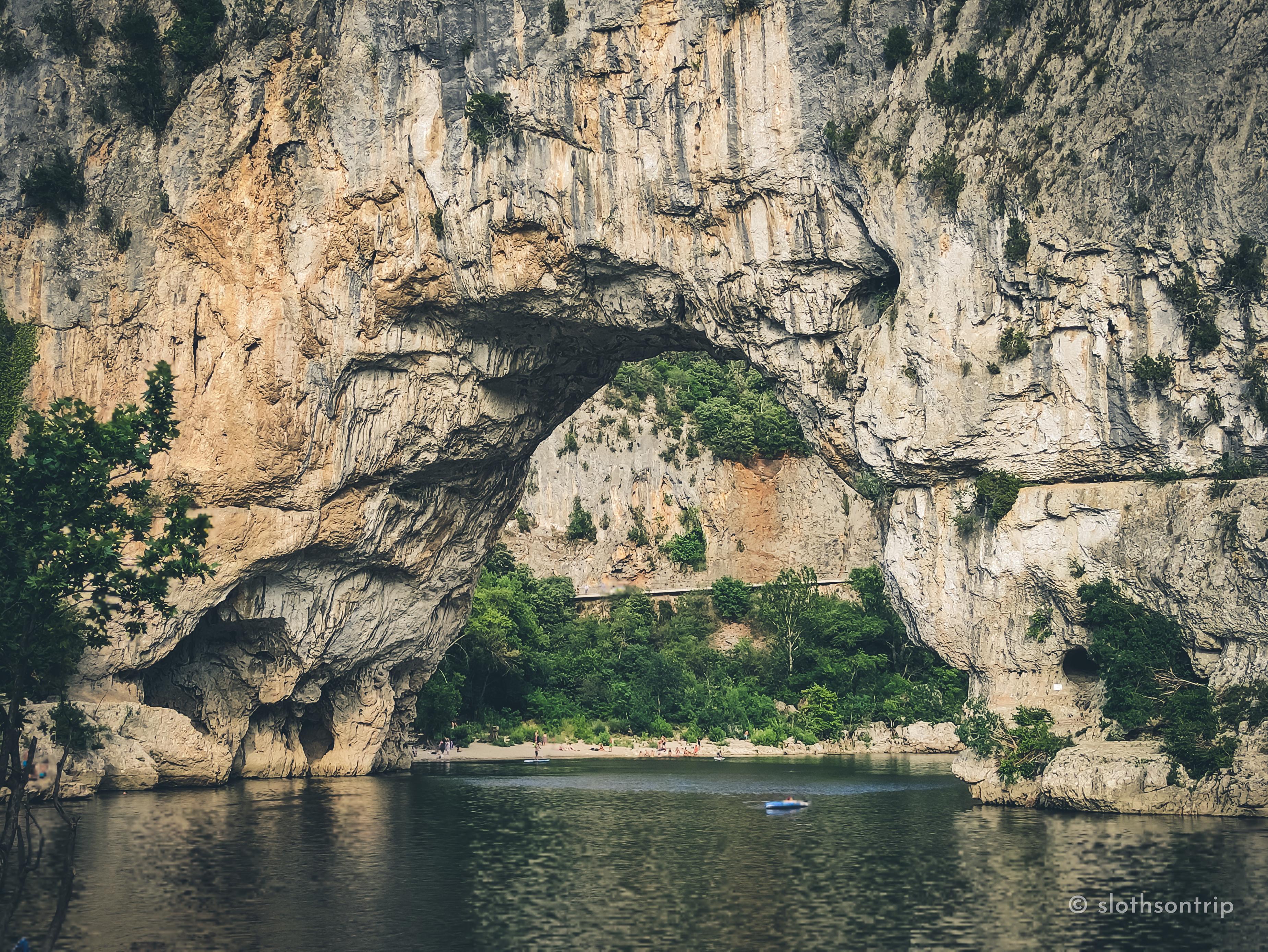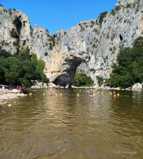 To również popularne miejsce startu dla spływów kajakowych po Ardèche – trasa pod łukiem Pont d’Arc to absolutny klasyk. W samym łuku, po lewej stronie, znajduje się nawet mała jaskinia, do której można wpłynąć kajakiem lub wejść z brzegu. W połączeniu z błękitem wody i złotym wapieniem skał tworzy to jeden z najbardziej malowniczych widoków w całej Francji.