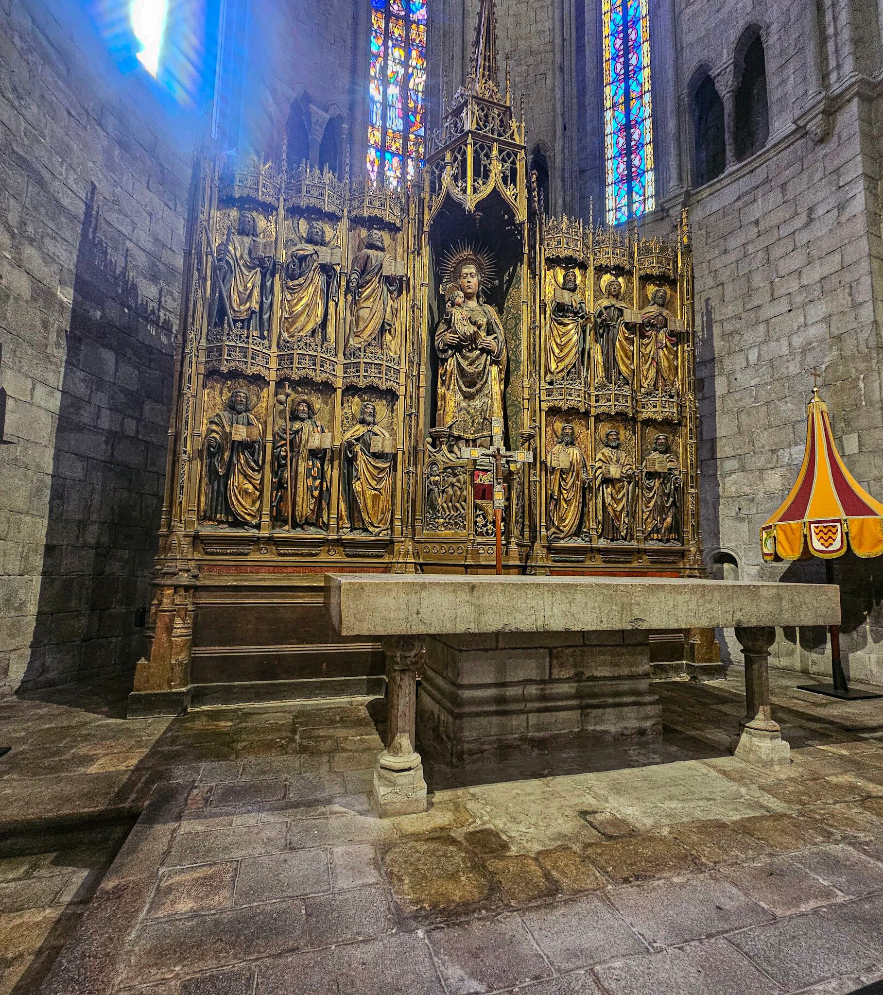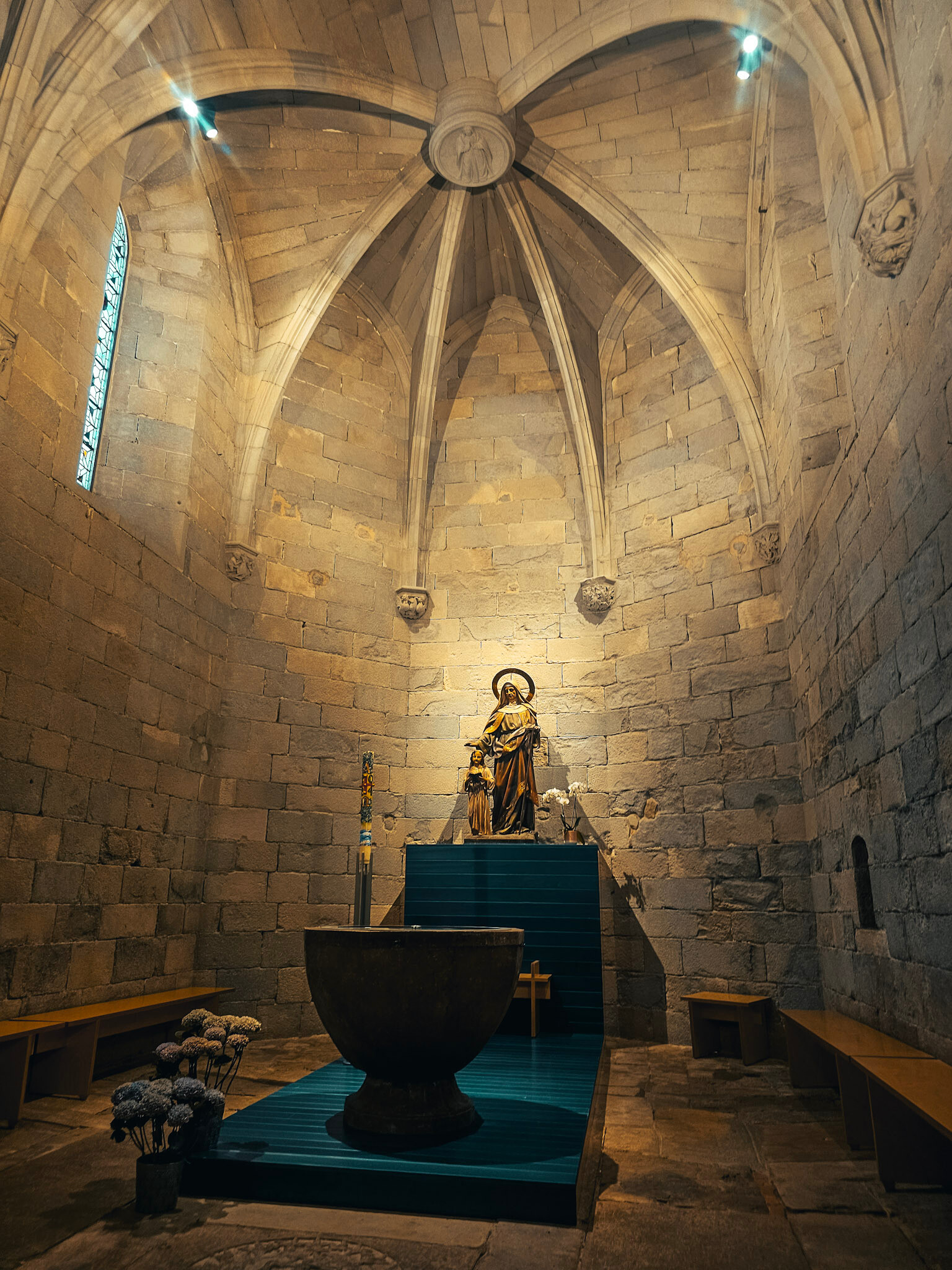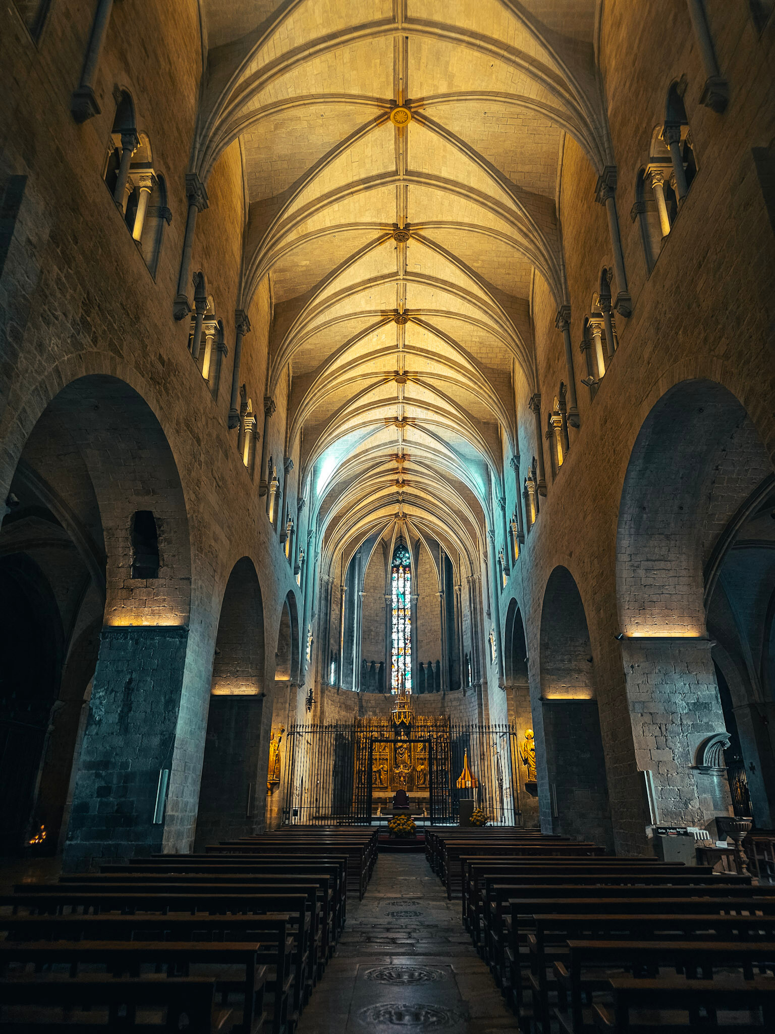 Warto zwrócić uwagę na detale kolumn i kapiteli, gdzie wyrzeźbiono sceny biblijne i motywy roślinne. Z krużganka można wejść do dawnej sali kapitularnej oraz muzeum katedralnego. W środku znajduje się również słynny Tapís de la Creació, średniowieczny arras przedstawiający stworzenie świata. To jeden z najcenniejszych zabytków w całej katedrze i prawdziwa perełka sztuki romańskiej. Dziś katedra jest jednym z najważniejszych punktów Girony – miejscem, które warto zobaczyć nie tylko dla widoków, ale też dla klimatu i historii.