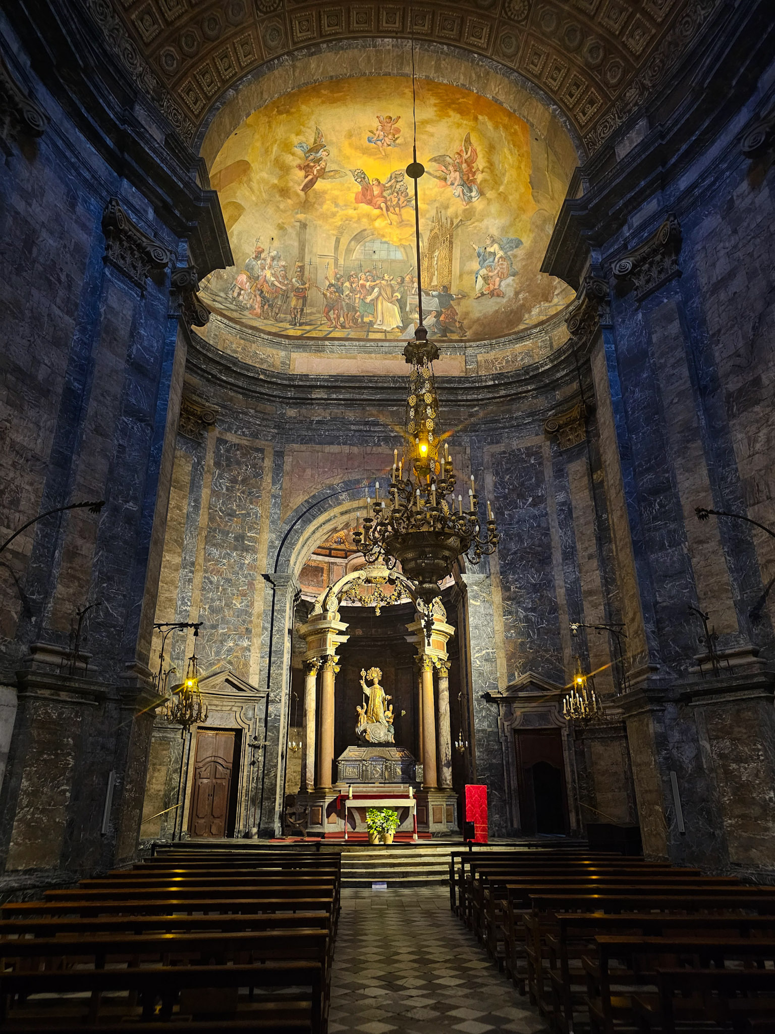 Wrażenie robi także bogato zdobione prezbiterium i liczne kaplice boczne – to miejsce nie tylko sakralne, ale też świadek historii miasta od czasów rzymskich po współczesność. Katedra była rozbudowywana przez kilka stuleci, dlatego dziś łączy w sobie style romański, gotycki i barokowy. Skrywa nie tylko imponującą nawę, ale też jedno z najciekawszych miejsc – romański krużganek z XII wieku. To spokojna przestrzeń z arkadami i ogrodem pośrodku, która przez wieki służyła kanonikom jako miejsce codziennego życia i refleksji.