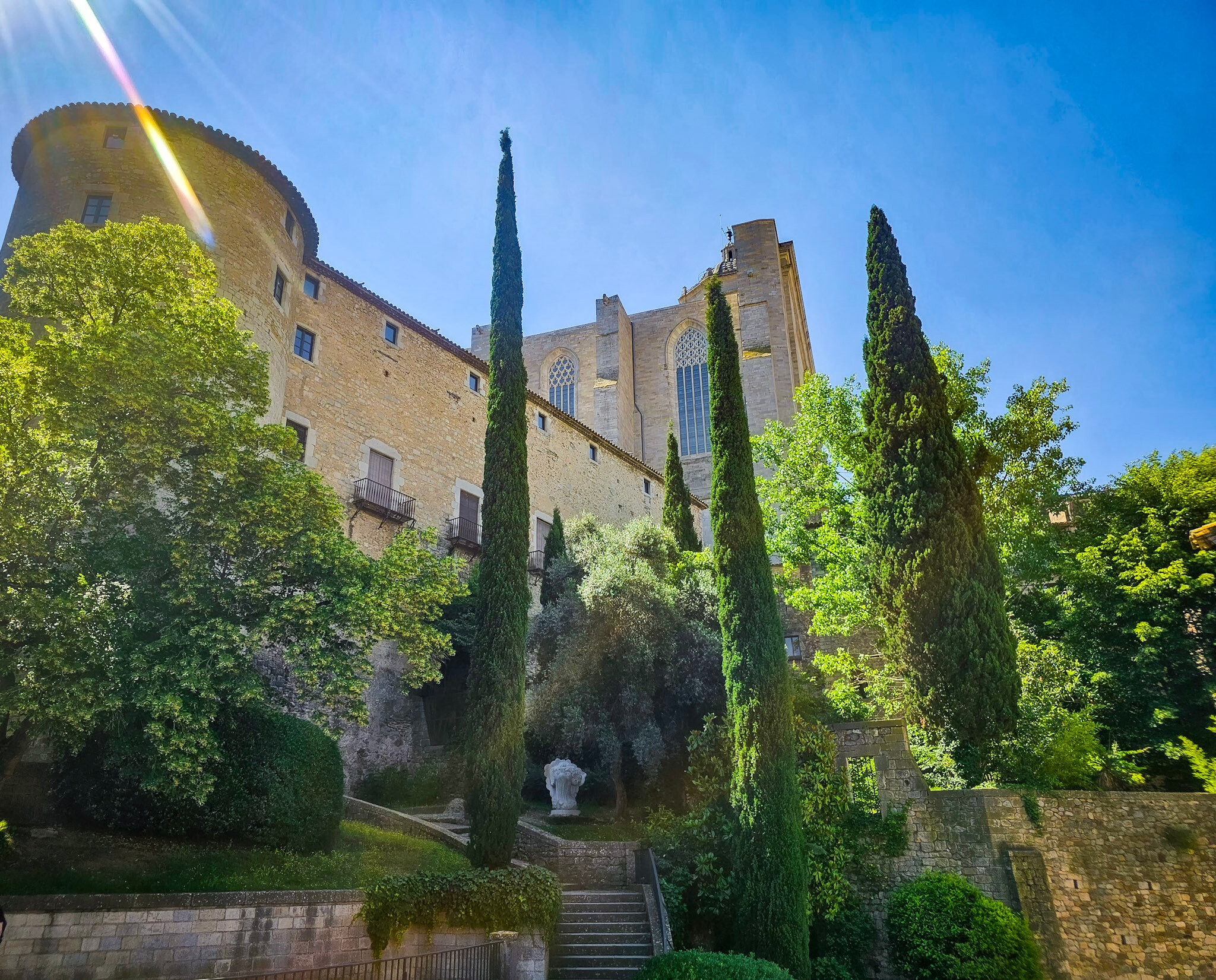 Po wyjściu z katedry naturalnie kierujemy się na mury miejskie, jeden z najfajniejszych spacerów w Gironie. Wąska ścieżka prowadzi wzdłuż kamiennych fortyfikacji, z których co chwilę otwierają się widoki na stare miasto i okolicę .To lekka trasa, bardziej na chłonięcie klimatu niż wysiłek, z kilkoma punktami widokowymi po drodze.