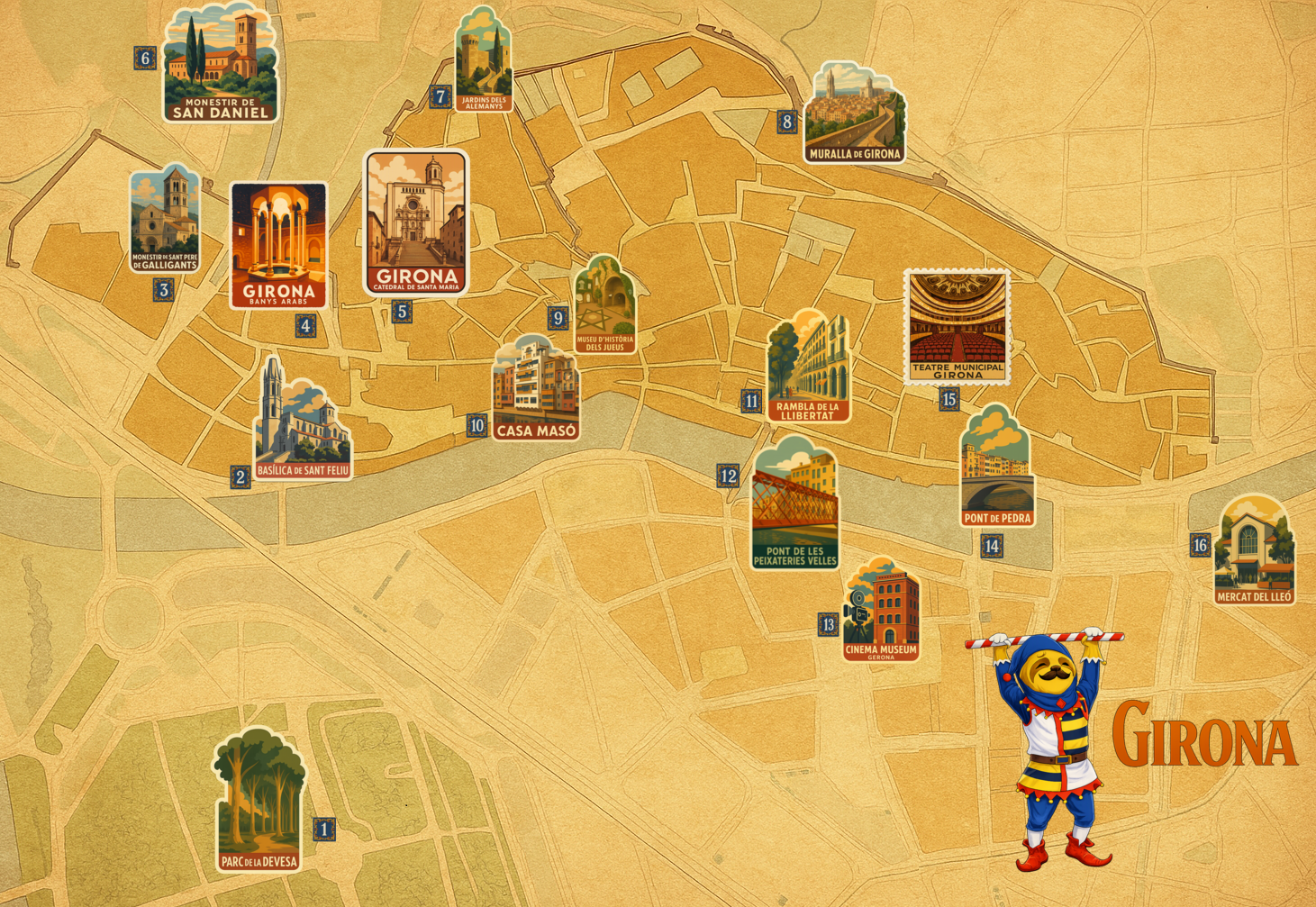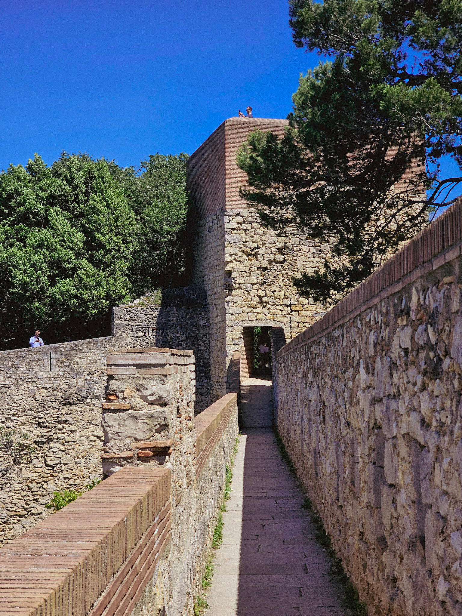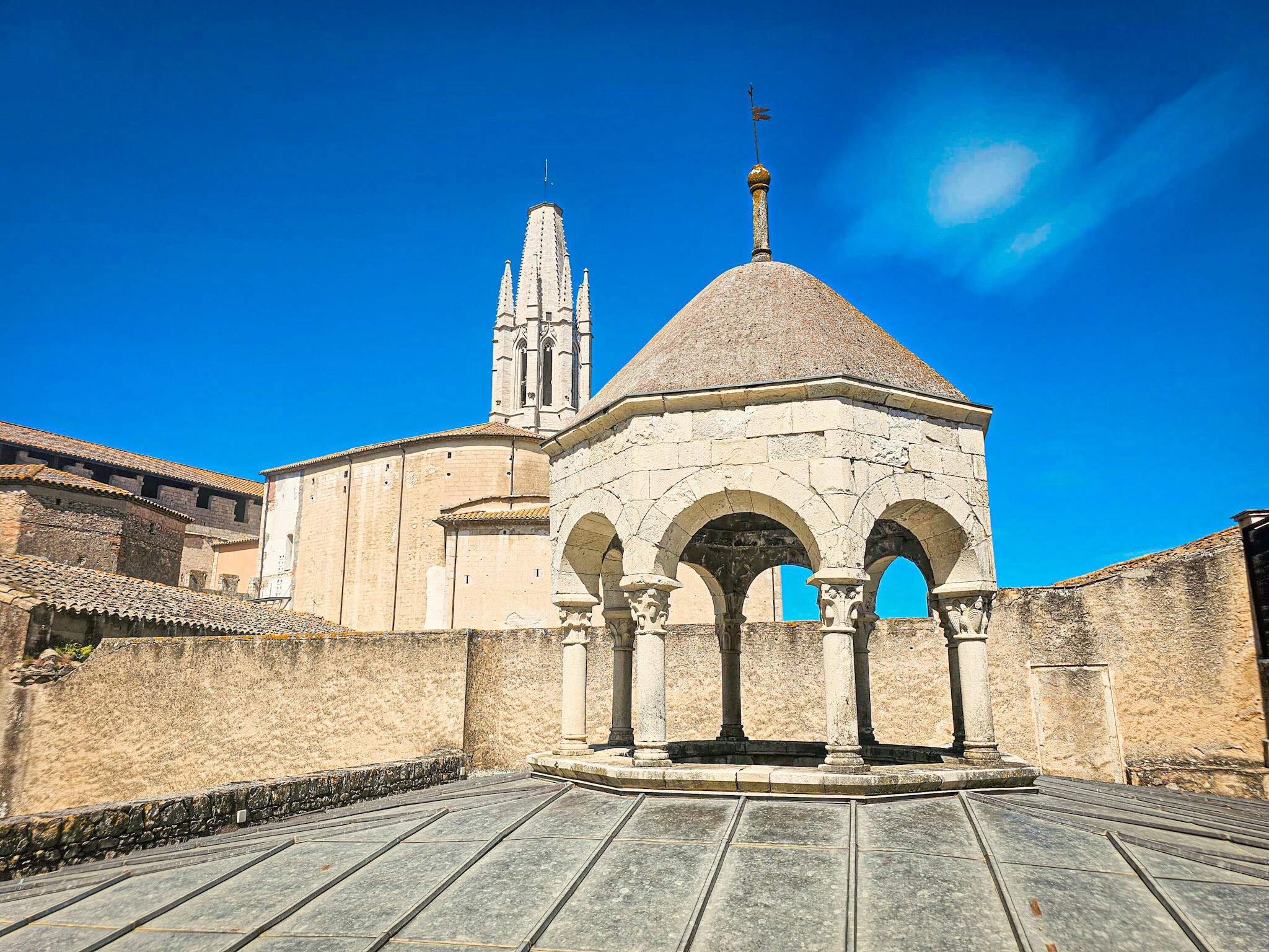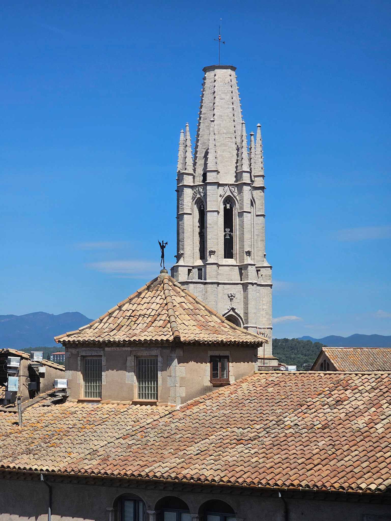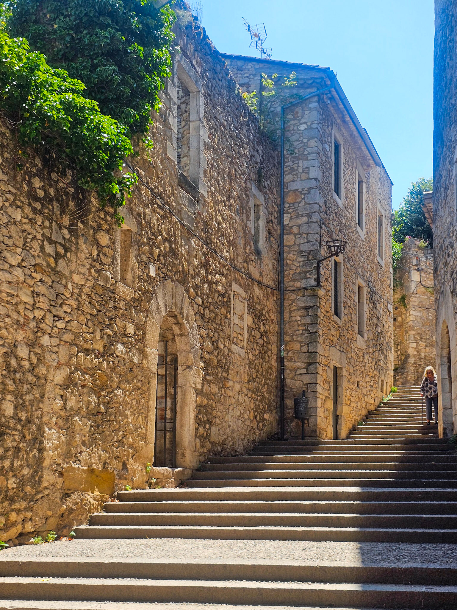 Co jakiś czas pojawiają się baszty i wieże obronne, na które można wejść, kiedyś służyły do obserwacji i obrony miasta, dziś są najlepszymi punktami widokowymi. Z góry widać nie tylko dachy Girony, ale też zielone wzgórza i fragmenty dawnych murów ciągnących się wokół starego miasta.