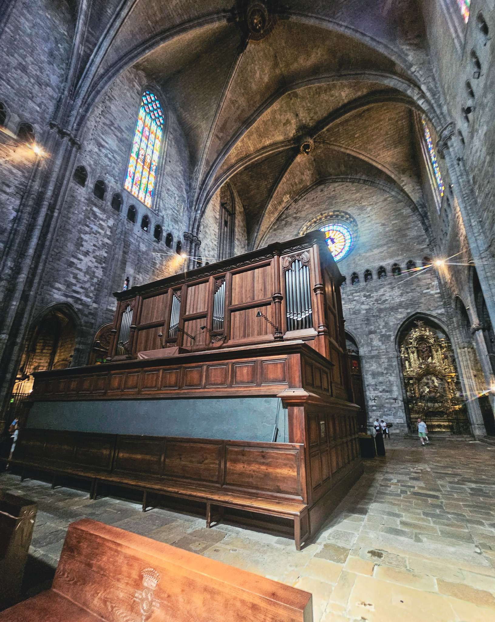 Czas wdrapać się po schodach do Katedra Najświętszej Marii Panny, to jeden z najbardziej imponujących kościołów w Hiszpanii. Jej budowę rozpoczęto w XI wieku na miejscu dawnego meczetu, który wcześniej powstał na ruinach rzymskiej świątyni. Najbardziej charakterystycznym elementem jest ogromna, barokowa fasada i monumentalne schody prowadzące do wejścia. Wnętrze zaskakuje jeszcze bardziej, znajduje się tu najszersza nawa gotycka na świecie (ok. 23 metry szerokości). Przestrzeń jest surowa, ale robi ogromne wrażenie skalą i światłem wpadającym przez witraże. Szczególną uwagę przyciągają drewniane organy, które stoją na wysokiej emporze i są jednym z ważniejszych elementów wyposażenia katedry. Ich obecna forma pochodzi głównie z XVII–XVIII wieku, choć instrument był wielokrotnie przebudowywany i dostosowywany do nowych potrzeb muzycznych.