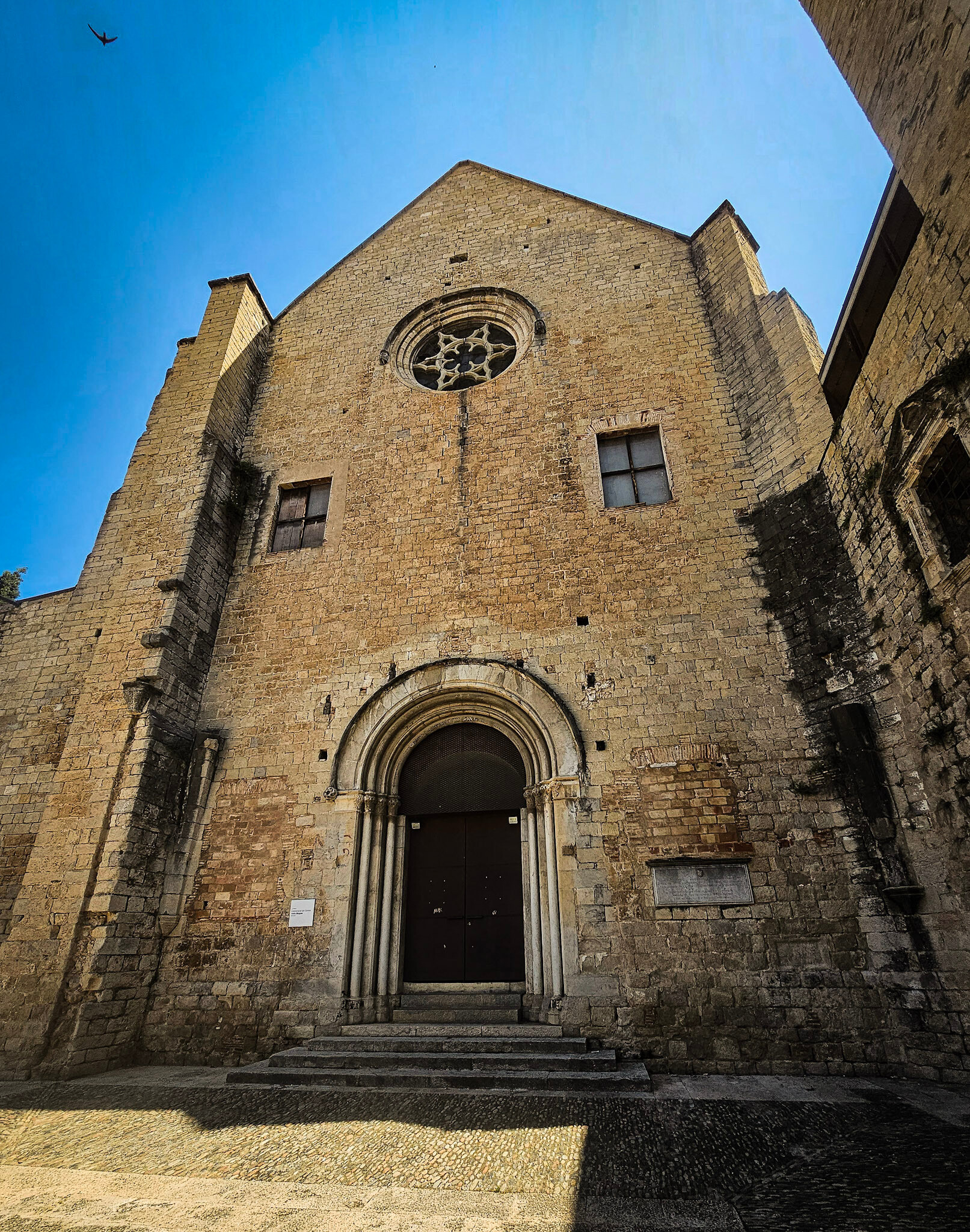 Pierwsze kroki kierujemy do Bazyliki Sant Feliu, stoi ona tuż obok katedry, ale ma spokojniejszy, mniej turystyczny klimat. Świątynia powstała na miejscu wczesnochrześcijańskiego kościoła zbudowanego nad grobem św. Feliksa, który zginął w Gironie w czasach prześladowań chrześcijan za panowania cesarza Dioklecjana (III/IV wiek), Według tradycji został stracony za wiarę, a jego grób szybko stał się miejscem kultu. W czasach rzymskich Girona funkcjonowała jako Gerunda, a zachowane w środku sarkofagi to właśnie pozostałość po tamtej epoce – pierwotnie były grobowcami lokalnych elit, później wmurowano je w ściany kościoła. Z zewnątrz uwagę przyciąga charakterystyczna wieża ze „ściętym” szczytem, a w środku surowy klimat sprawia, że to krótki, ale bardzo konkretny przystanek na start zwiedzania.