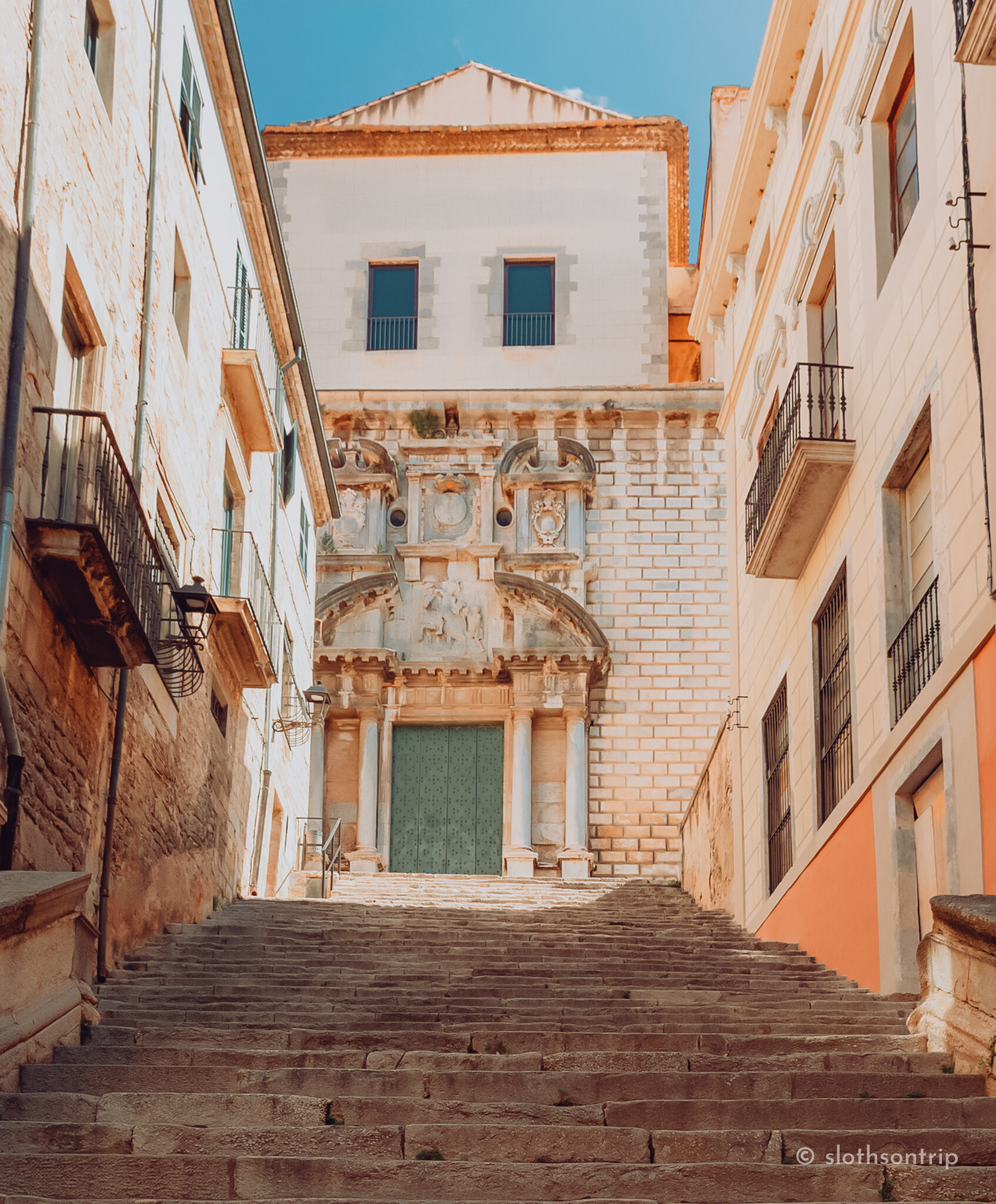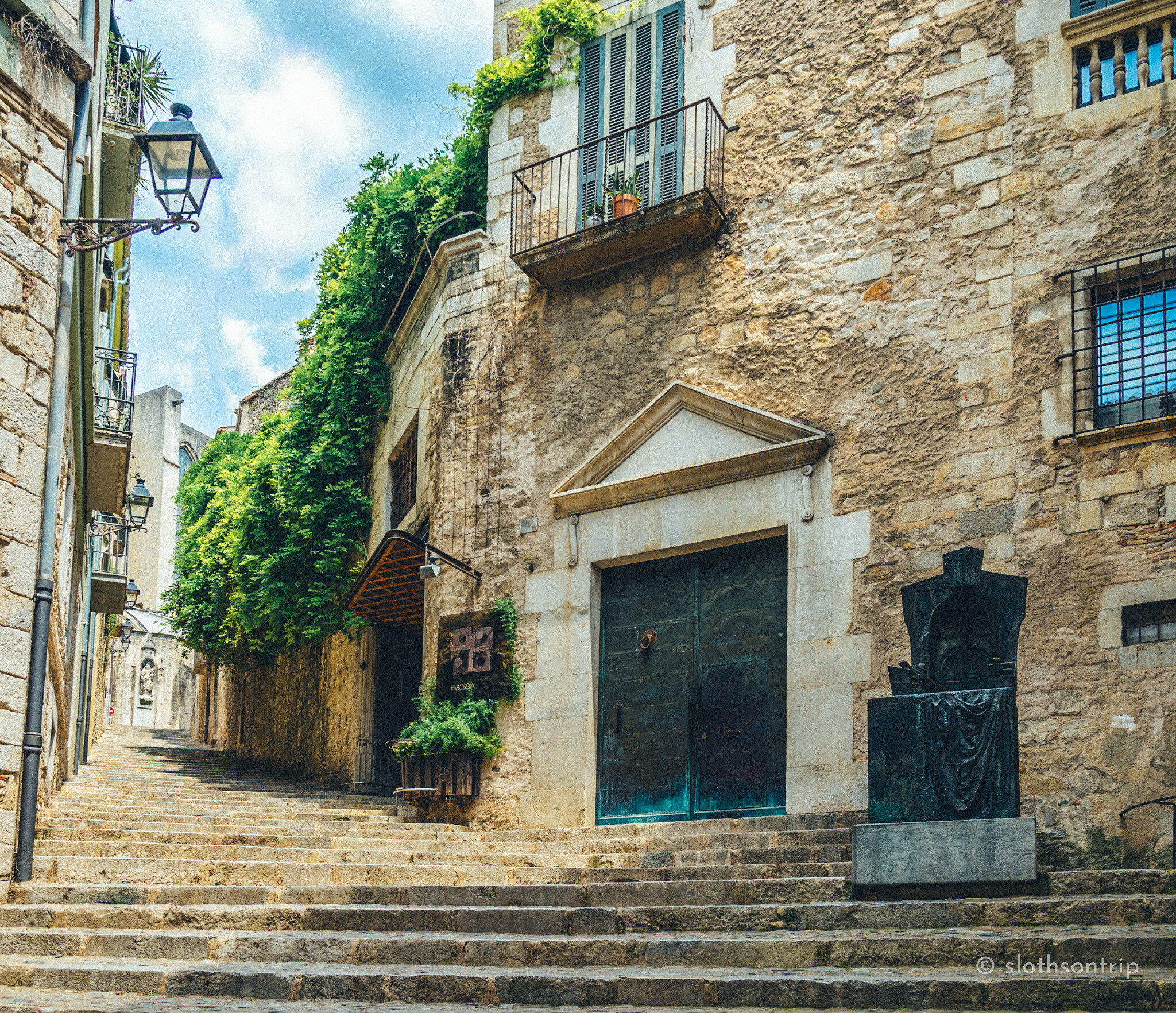 Schodząc dalej w stronę starego miasta, przez dawną dzielnicę żydowską El Call, wchodzimy w prawdziwy labirynt wąskich uliczek, gdzie Girona pokazuje swoje najbardziej autentyczne oblicze. Kamienne ściany, ciasne przejścia i strome schody tworzą klimat, który momentami bardziej przypomina średniowieczną twierdzę niż turystyczne miasto.