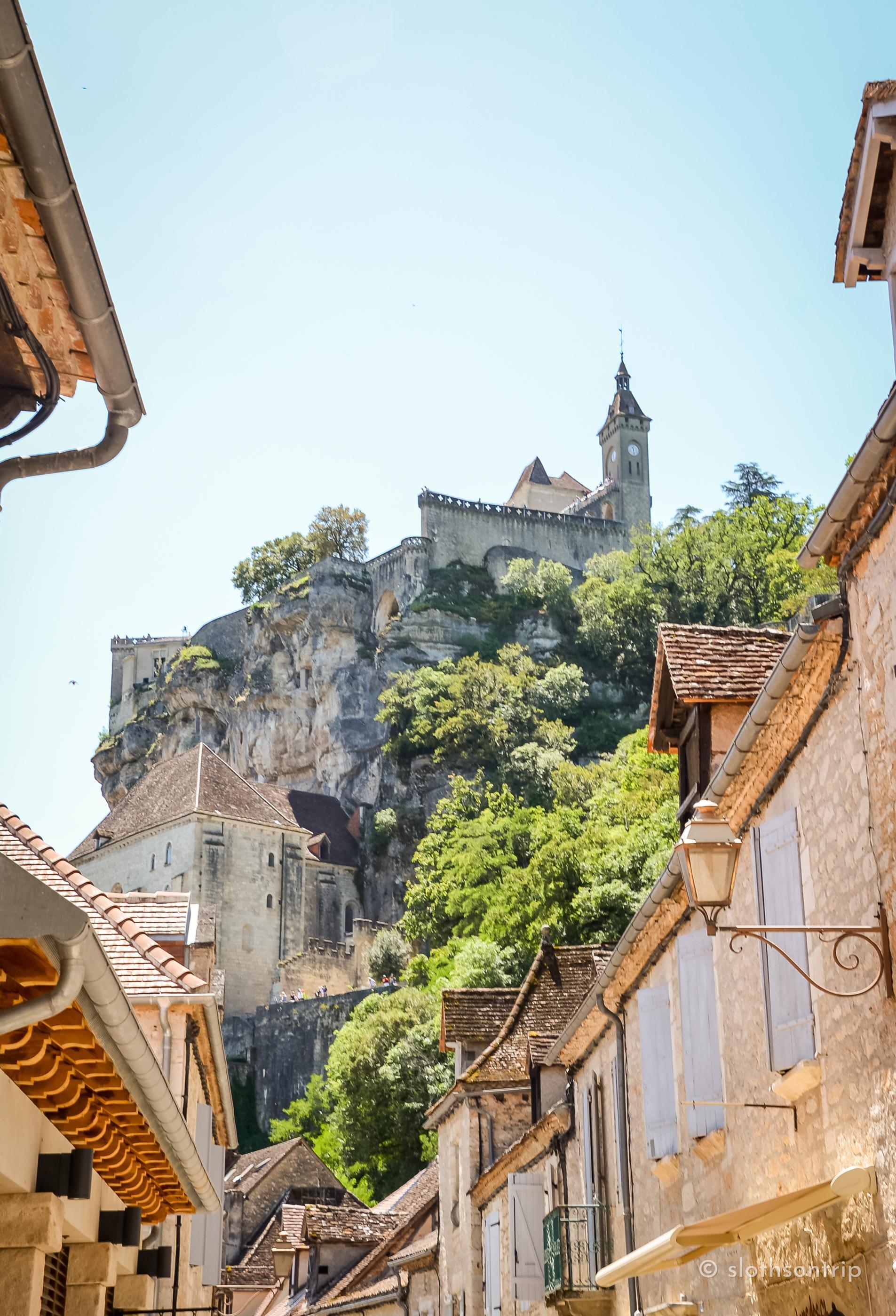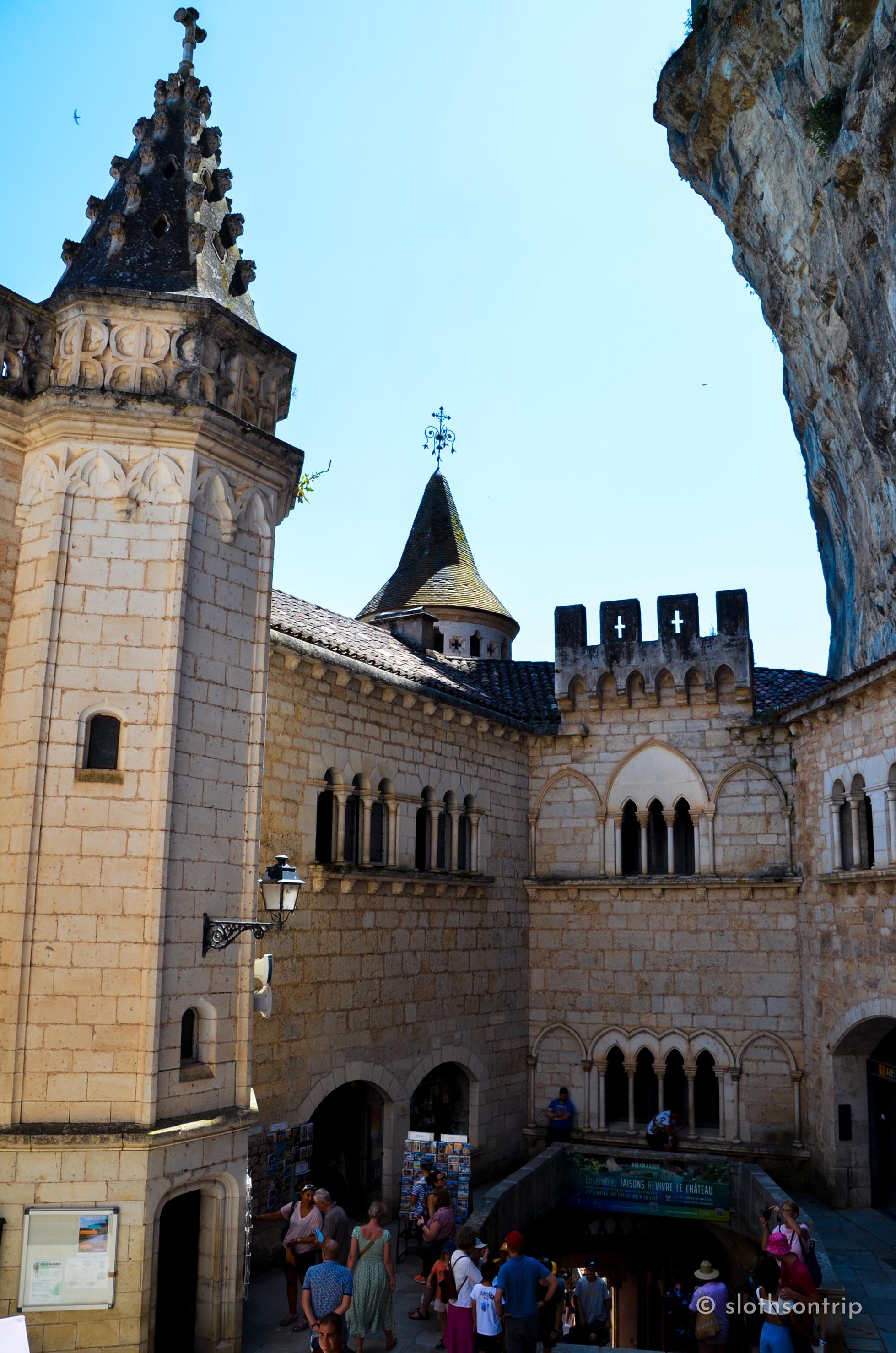 Zdecydowanie warto wspiąć się jeszcze wyżej – do zamku Rocamadour. Stamtąd roztacza się spektakularny widok na dolinę Alzou – kamienne domy przyklejone do skał i wąski wąwóz w dole wyglądają jak makieta, którą ktoś zapomniał schować po zakończeniu średniowiecznego filmu.