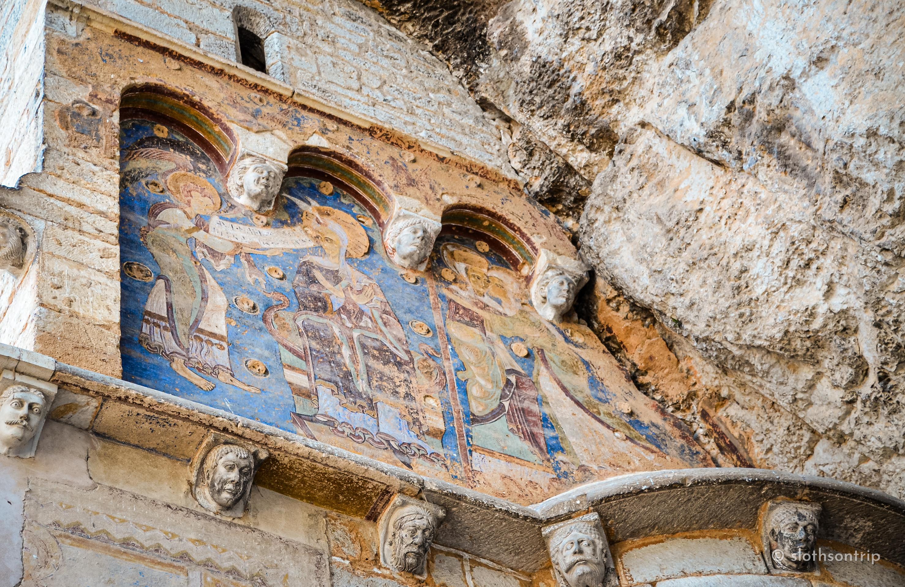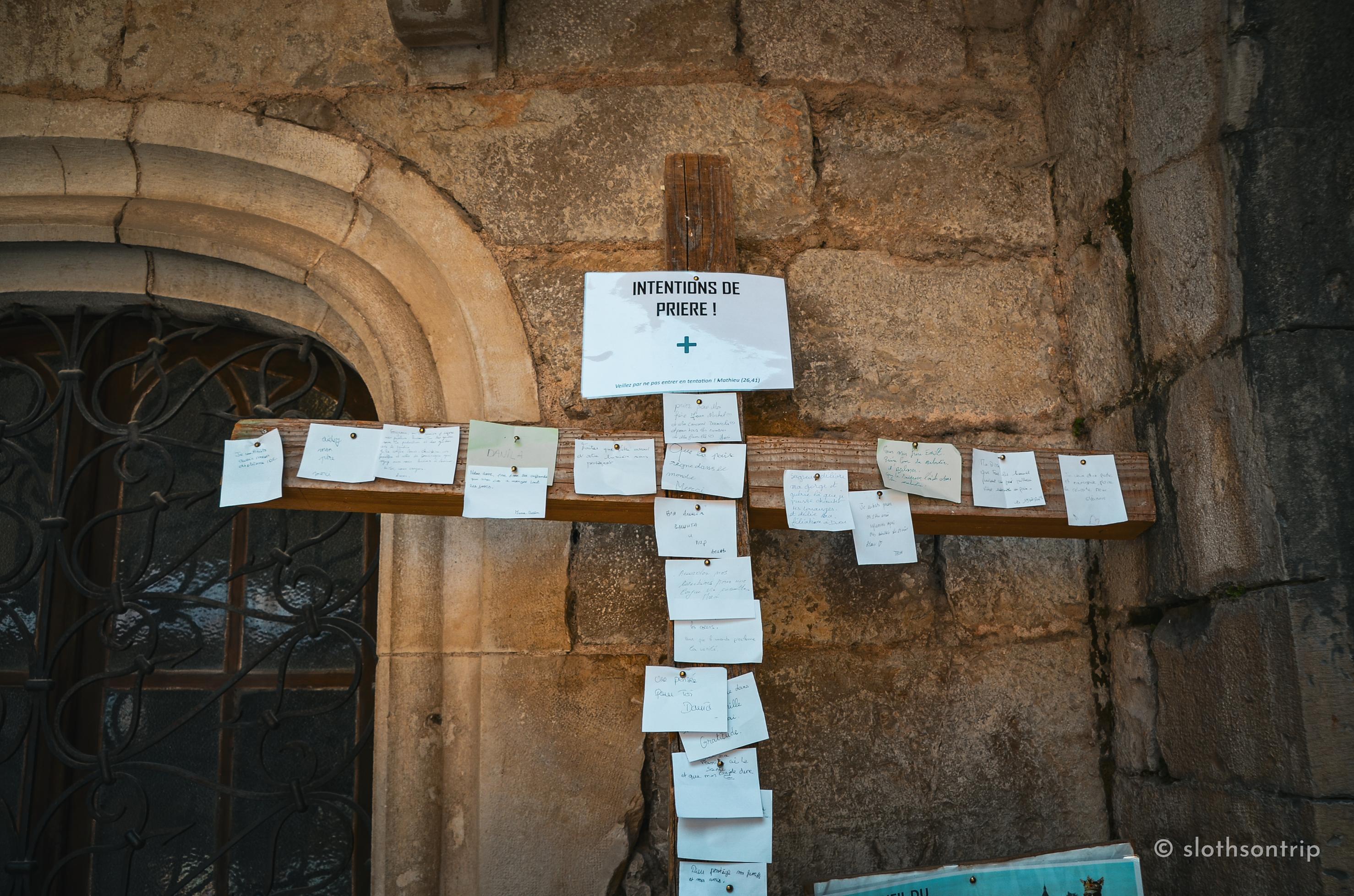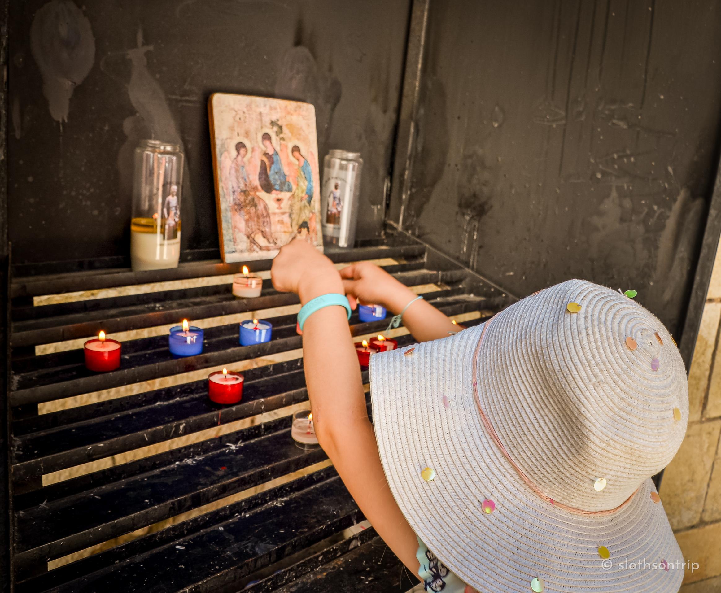 W samym sanktuarium kamień, cisza i modlitwy mieszają się ze światłem świec. Na ścianach widać dawne freski, a w kaplicach pielgrzymi zapalają świeczki i zostawiają kartki z prośbami, nadzieją i podziękowaniem. I my też zapaliliśmy świeczkę i zostawiliśmy swoją małą karteczkę z życzeniem – bo w takim miejscu po prostu nie da się przejść obojętnie.
