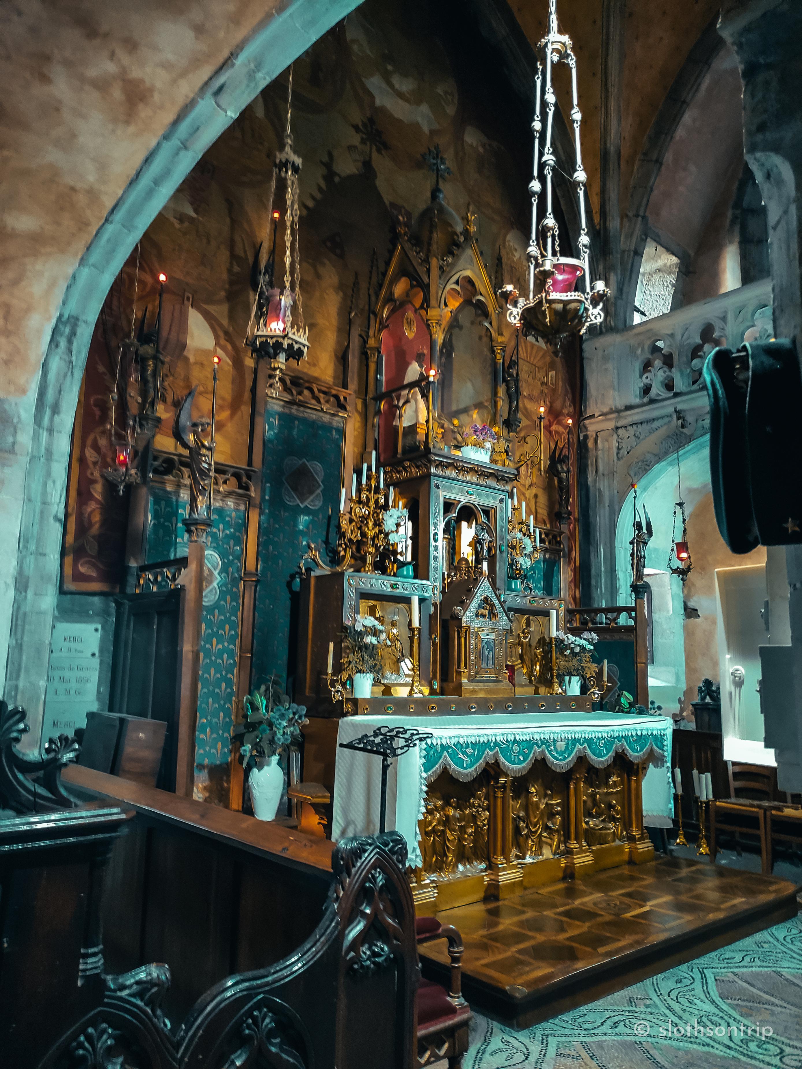 Rocamadour to jedno z najważniejszych miejsc pielgrzymkowych we Francji. Wąska droga wspina się po zboczu aż do sanktuarium Matki Bożej z Cudowną Figurką – czarnej madonny, do której od wieków ciągną pielgrzymi i turyści. Można wejść pieszo po 216 schodach (co ma swój klimat i satysfakcję), albo wybrać windę, jeśli kolana już protestują – choć w sezonie trzeba się liczyć z tym, że zanim ruszy w górę, czeka Cię jeszcze pielgrzymka w kolejce.